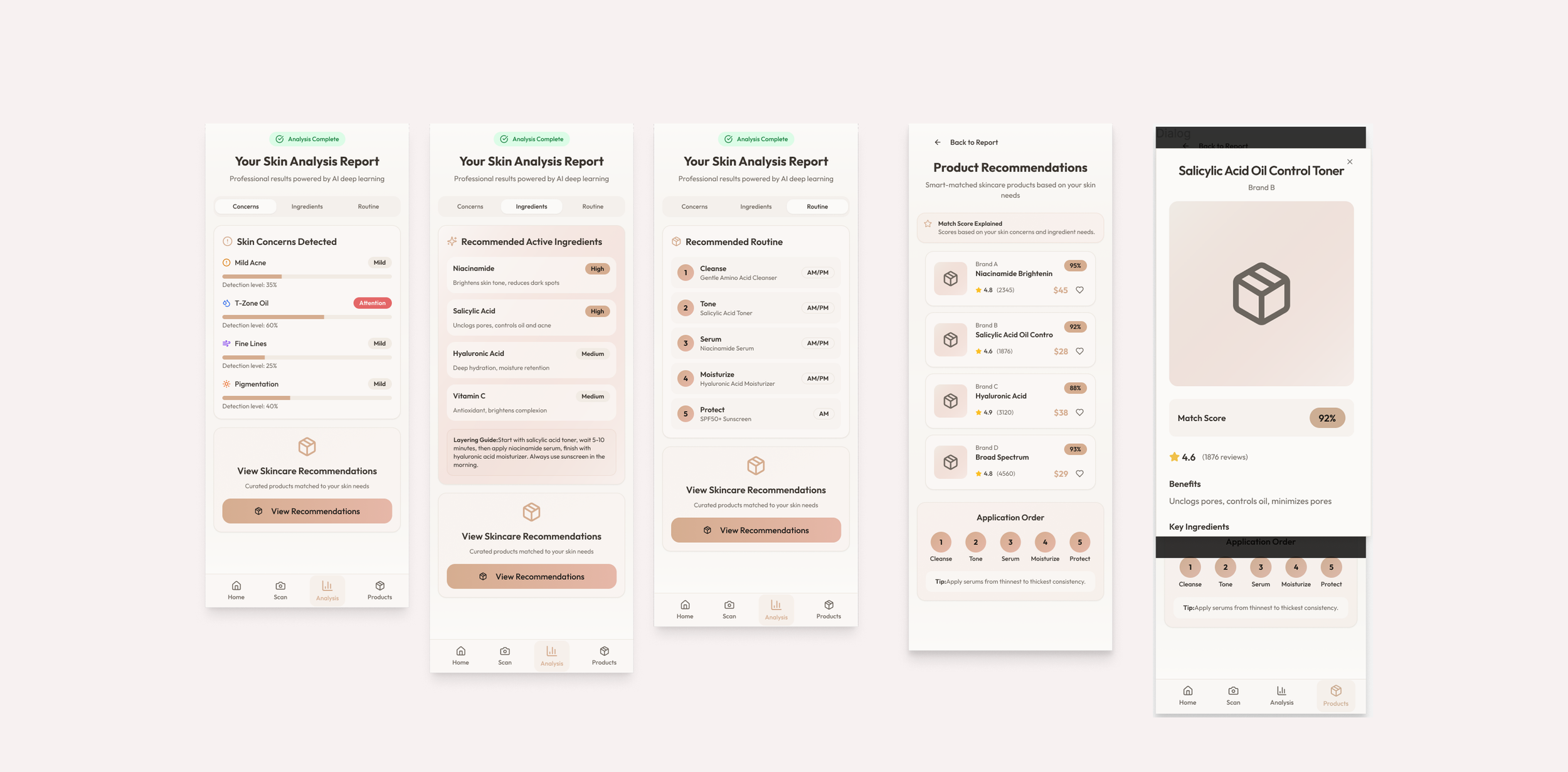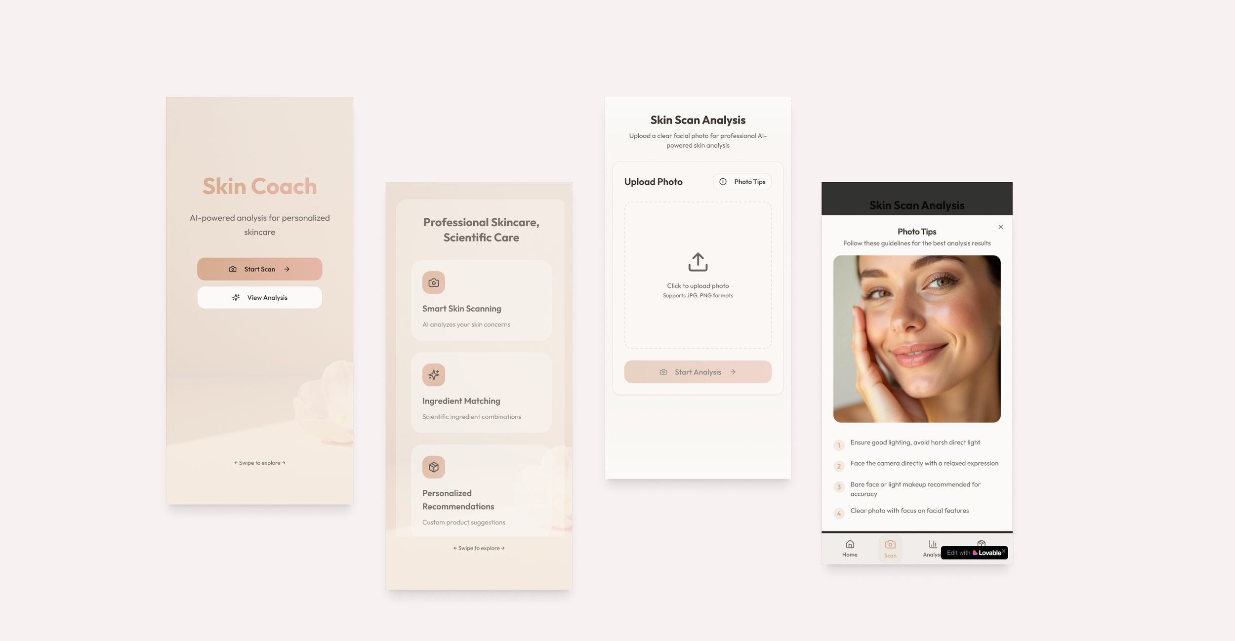 Skin Coach is an AI-powered app designed to help users understand their skin condition and build personalized skincare routines. By scanning the user’s skin, the app identifies specific issues, recommends ingredient-based product combinations, and provides safe, effective routines. This approach helps users avoid blindly layering products, prevent irritation, and achieve better skincare results.